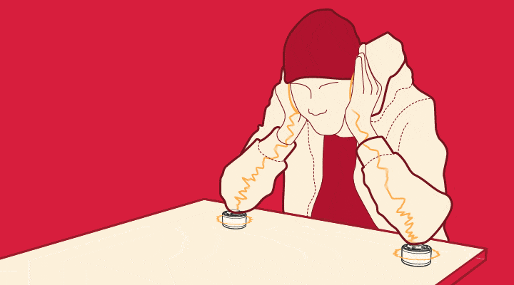 They could listen by placing their elbows on the tables surface, giving them an immersive musical experience without disturbing anyone else in store.